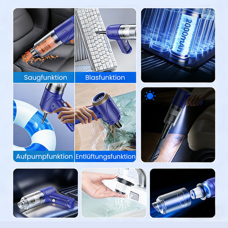 TRĂ DLĂS & LĂTTVIKTIG â Med en vikt pĂ„ endast 380 g erbjuder den kompakta och trĂ„dlösa designen fullstĂ€ndig rörelsefrihet. Perfekt för enkel rengöring av bilen, hemmet eller kontoret â helt utan begrĂ€nsande sladdar.
