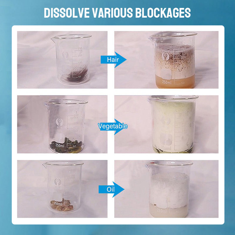 * Kraftfull funktion: Det kan snabbt lösa upp rörblockeringar som hÄr, papper, tvÄlskum, grönsaker, frukt, matrester, fett och organiskt material.