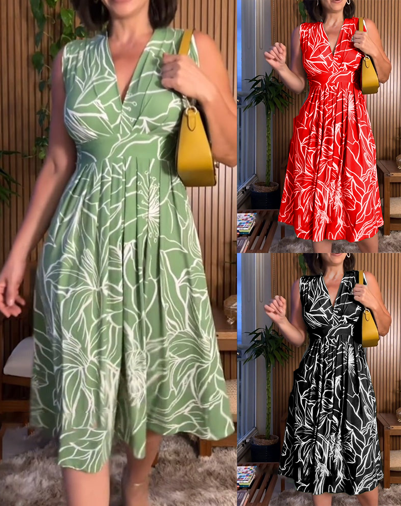 đ„°2024 Ny Plus Size Ă€rmlös V-ringad midja-snurrande klĂ€nningđâš