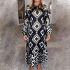 Bohemisk avslappnad klänning med tryck och lång ärm för kvinnor