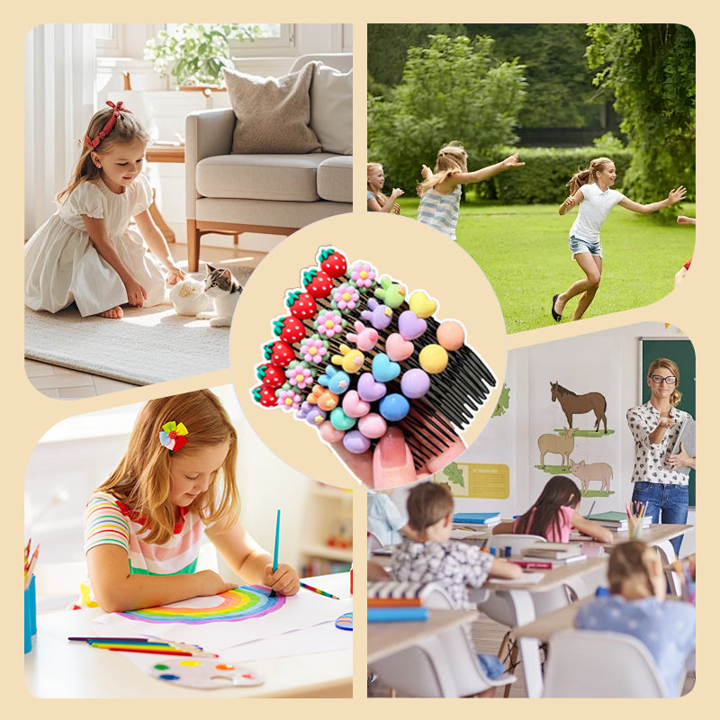 SÖT TIDNINGSMÖNSTER - Hårklämman är designad med lekfulla tecknade mönster eller djurformer som jordgubbar och kaniner och är färgglad och charmig - vilket gör att den ser mer ut som en rolig leksak än bara en håraccessoar och uppmuntrar barn att bära den med glädje.