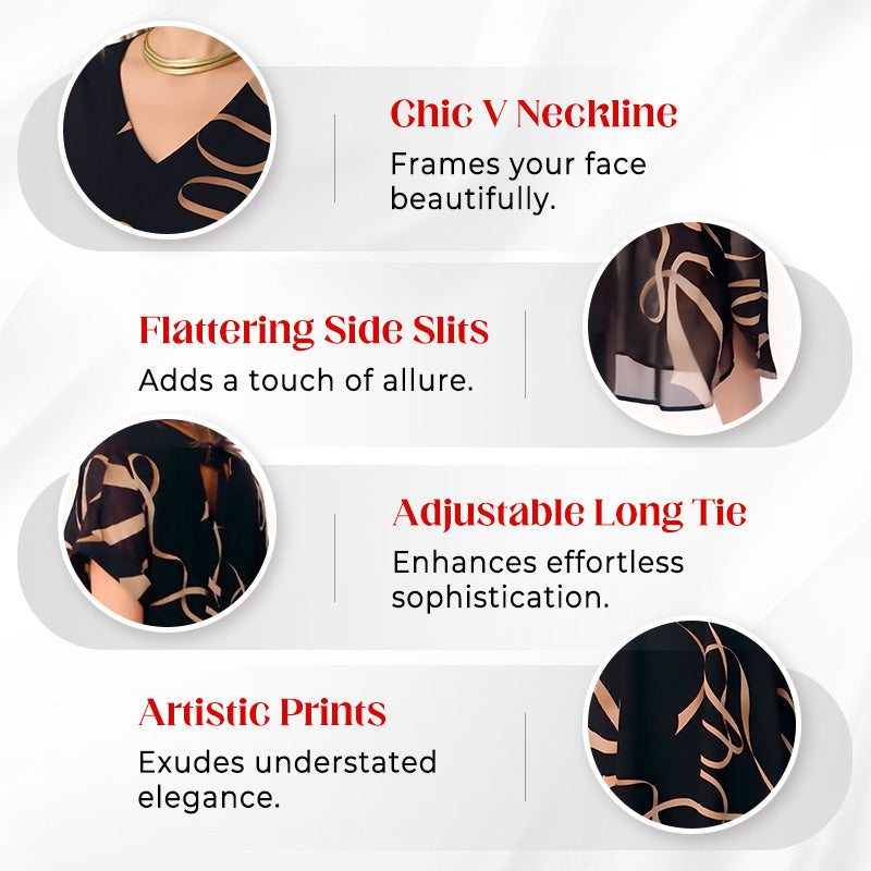 đâš Flödig lĂ„ngklĂ€nning med V-hals och tryck