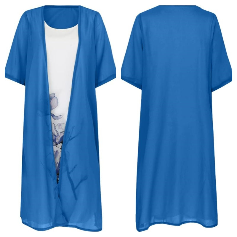 Kliv in i sommaren med sjÀlvförtroende och stil med vÄrt 2-delade sommarset för kvinnor - blommig klÀnning med genomskinlig kofta med öppen framsida. Oavsett om du Àr pÄ en trÀdgÄrdsfest eller njuter av en dag pÄ stranden, kommer detta set att göra dig till centrum för uppmÀrksamheten.