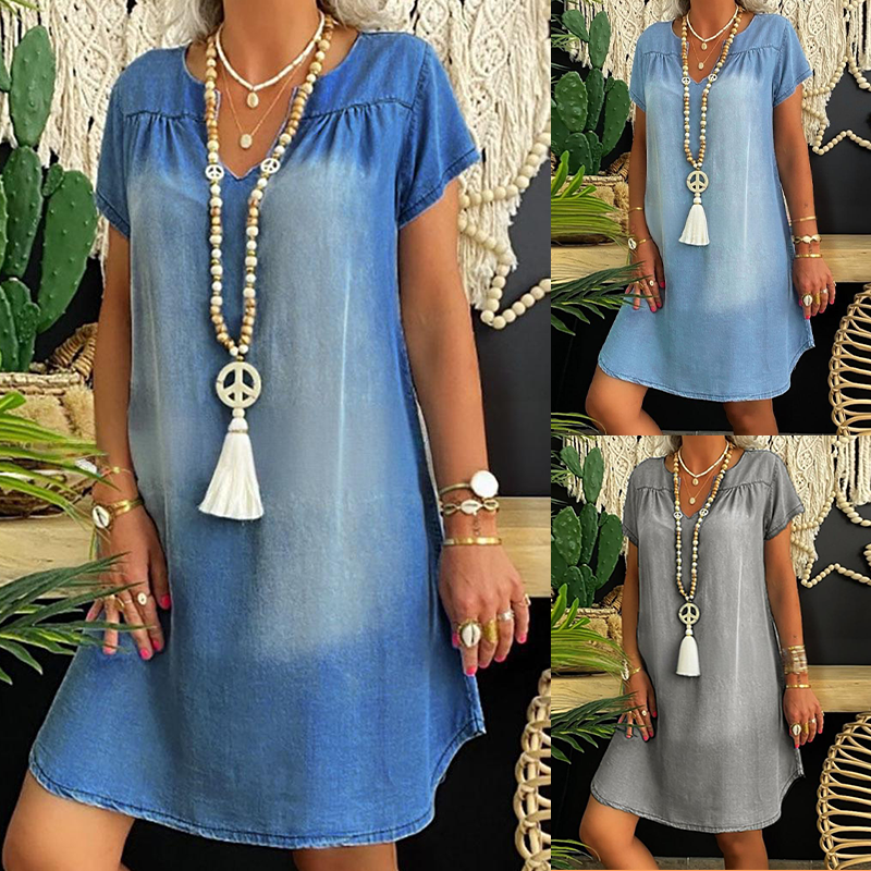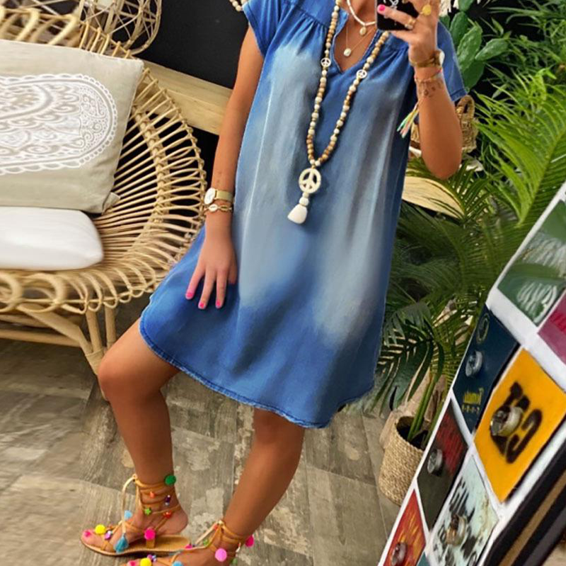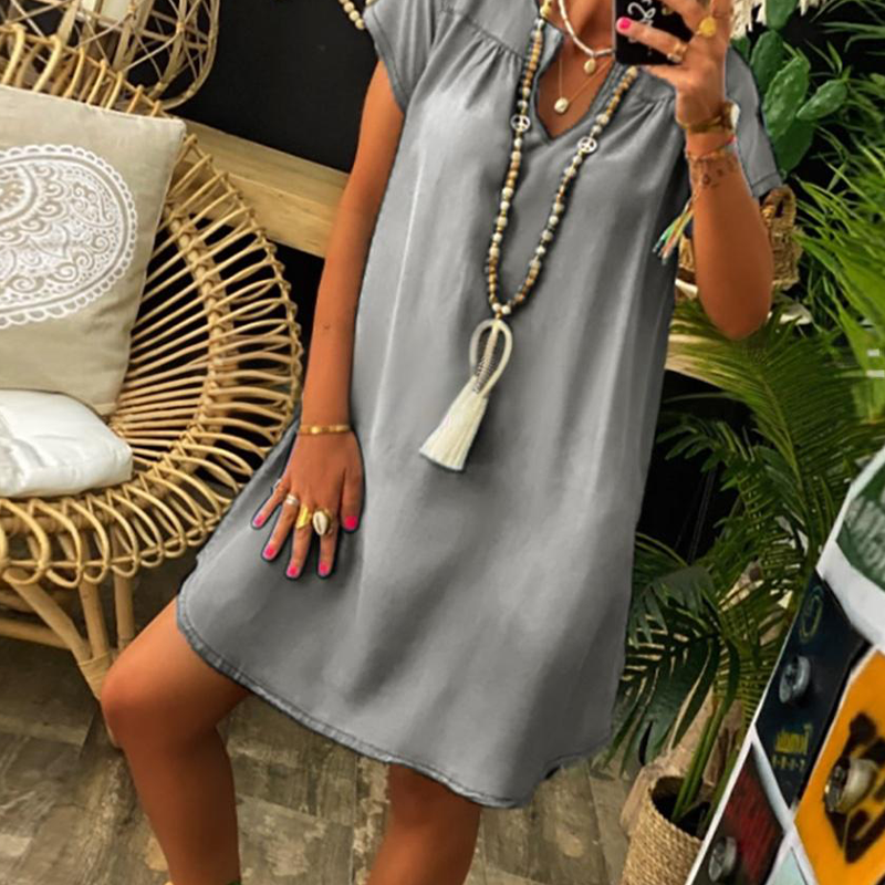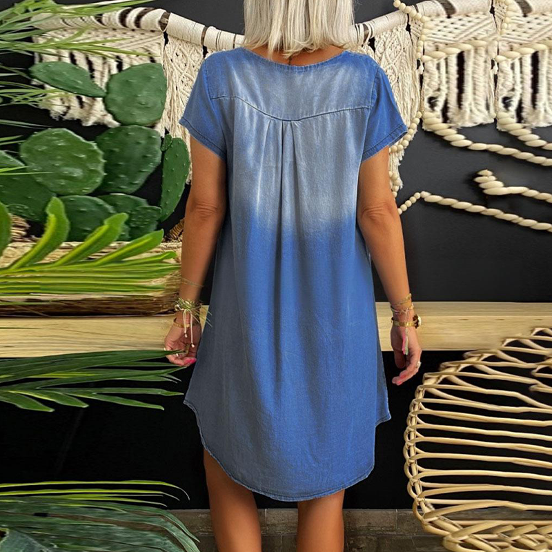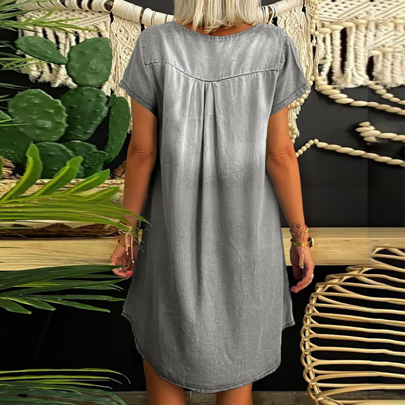 ❤️Jeansklänning för kvinnor med V-ringning och korta ärmar