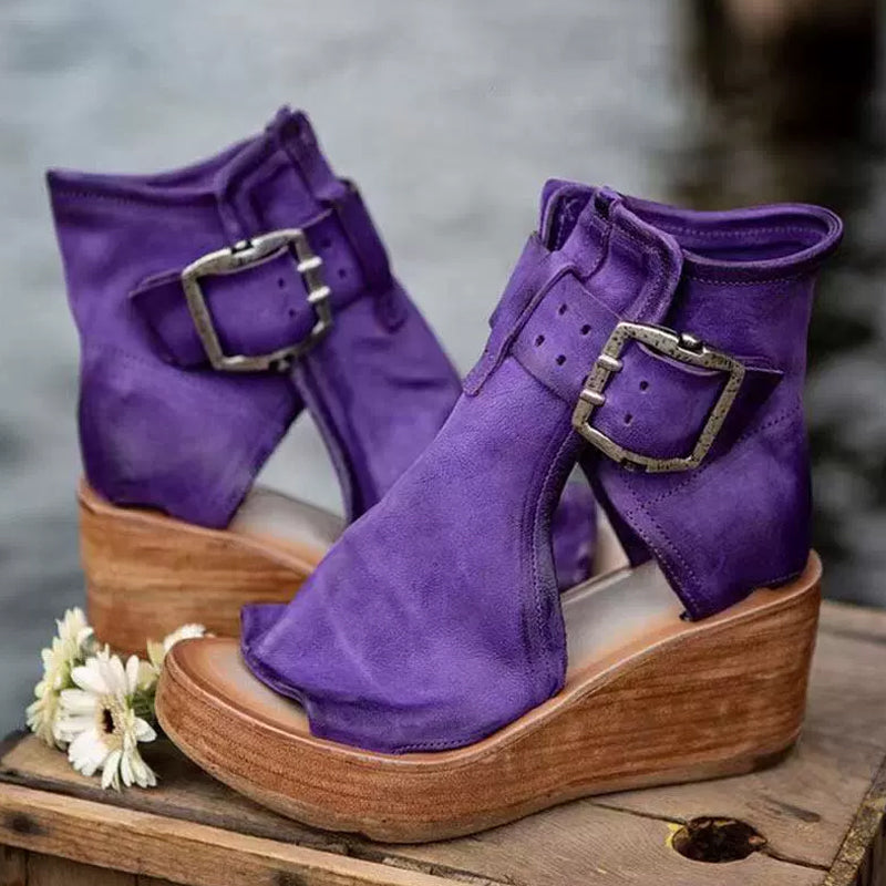 Peep-Toe Wedge Ankelstövlar med spänne