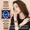 Roséguldsdamklocka: Elegant fyrkantig design med liten grön texturerad urtavla som tydligt visar lyxen hos dam-smycken. Roséguldsarmbandet och det solida rostfria stålet är sammanvävda för en unik design och ger en bekväm bärkomfort.