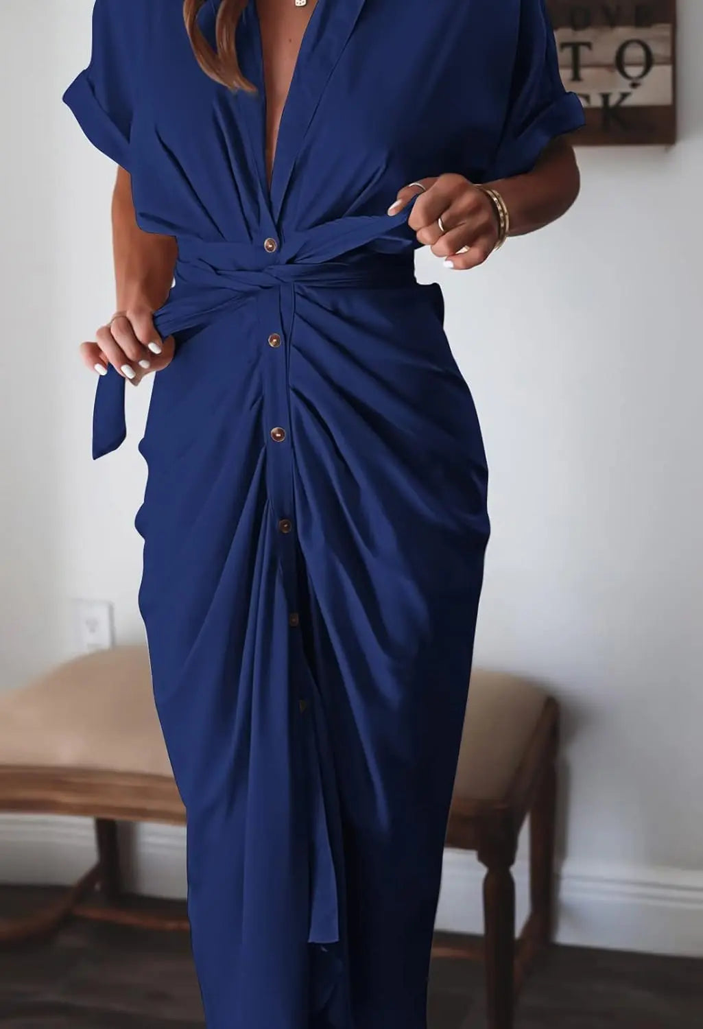 đ„ SkjortklĂ€nning med knappar och satin för kvinnor