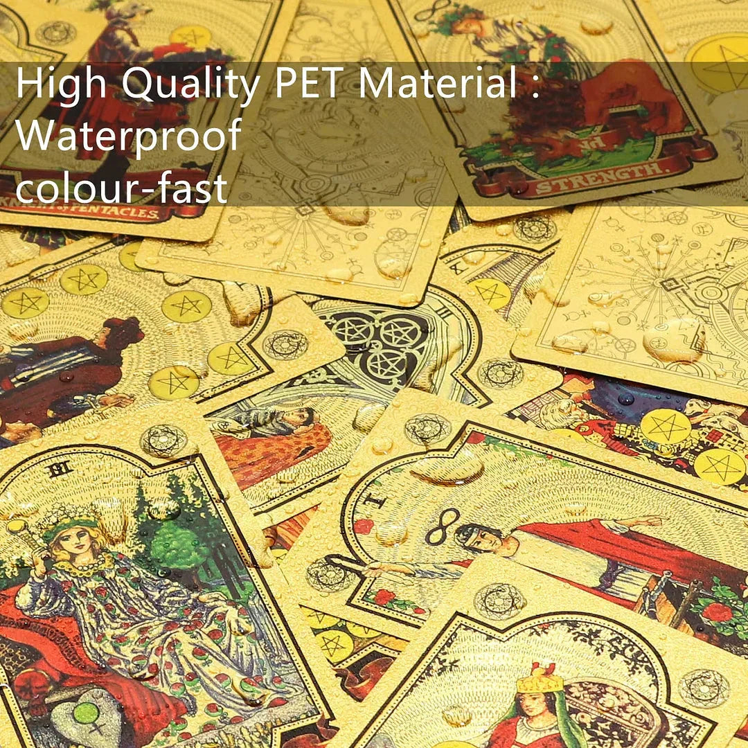 Högkvalitativa material: Tillverkade av förstklassigt PVC-material och tryckta med matt guldfärgad folie. Kortleken är inte bara visuellt fängslande, utan också hållbar.