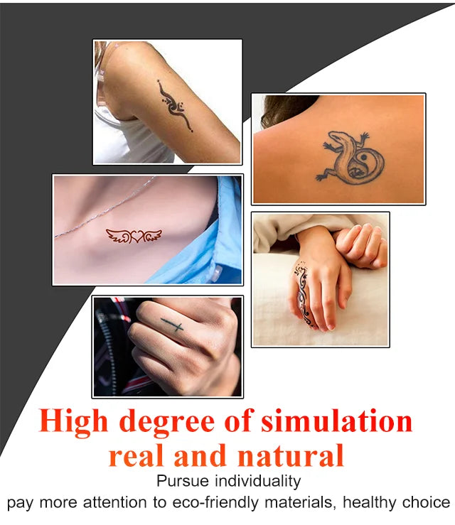 En tatuering gjord med rena naturliga växtextrakt är säker, icke-toxisk och skadar inte huden. Effekten är naturlig och verklig, livlig och tredimensionell.