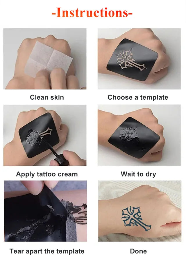 2 uppsättningar tatuering designs innehåller en mängd coola designer att välja mellan, katter, blommor, hjärtan, vingar, etc. Stora alternativ hjälper dig att rita söta tatueringar enklare.