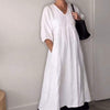 🌸 Högkvalitativt linnetyg 🥰Kvinnors V-ringad klänning