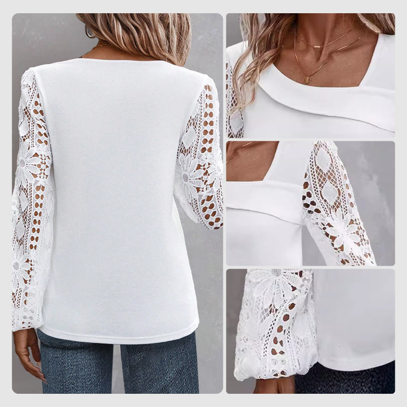 ELEGANT PATCHWORK I SPETS: Invecklade spetsdetaljer som ger en romantisk och sofistikerad touch till toppen och gör att den sticker ut i alla miljöer.