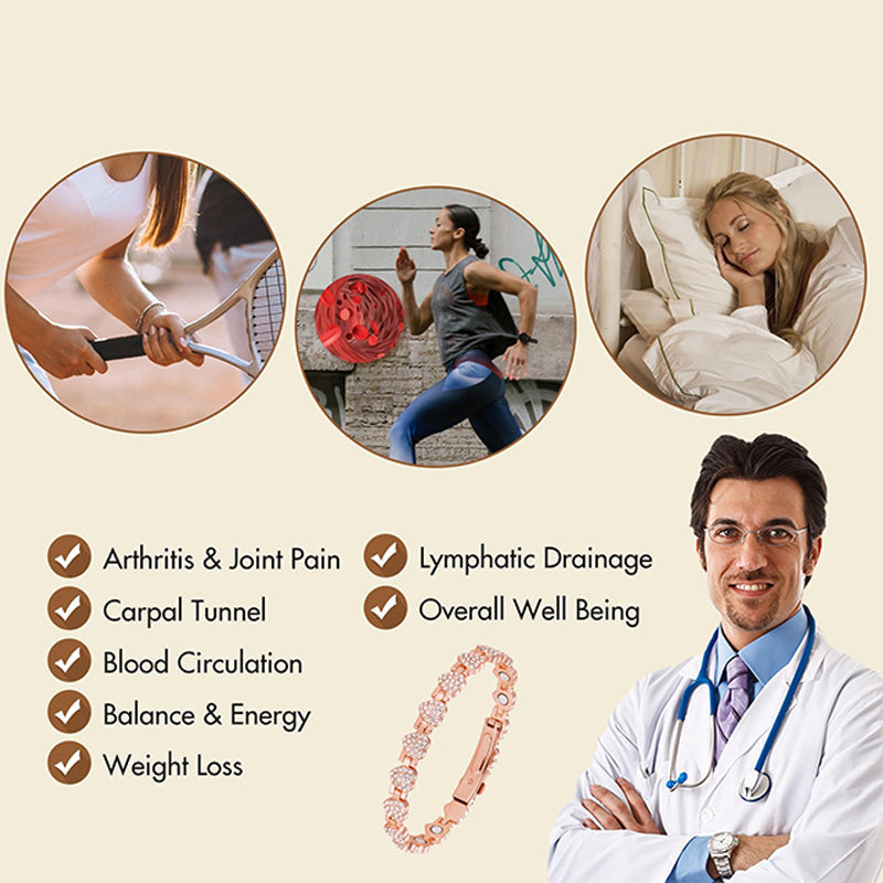 99,99% MASSIV KOPPAR: Tillverkat av 99,99% ren koppar är detta hypoallergena, bly- och nickelfria magnetarmband för kvinnor designat för maximal komfort och hållbarhet. Avancerad teknik används för att motverka oxidation och repor, vilket säkerställer en långvarig kvalitet.