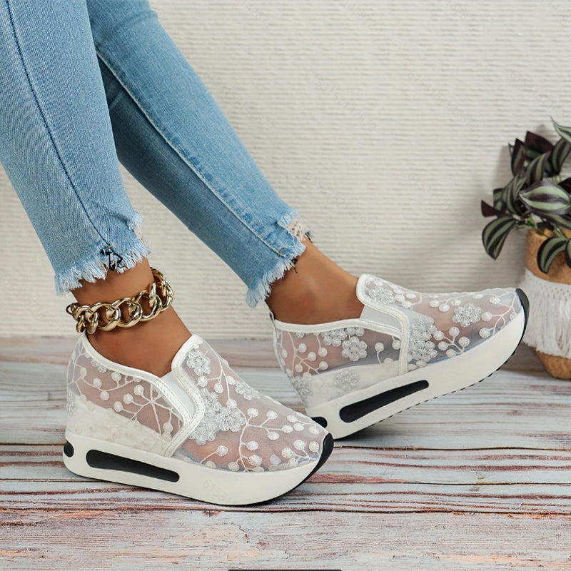 Blommigt mönstrade sneakers i broderad mesh
